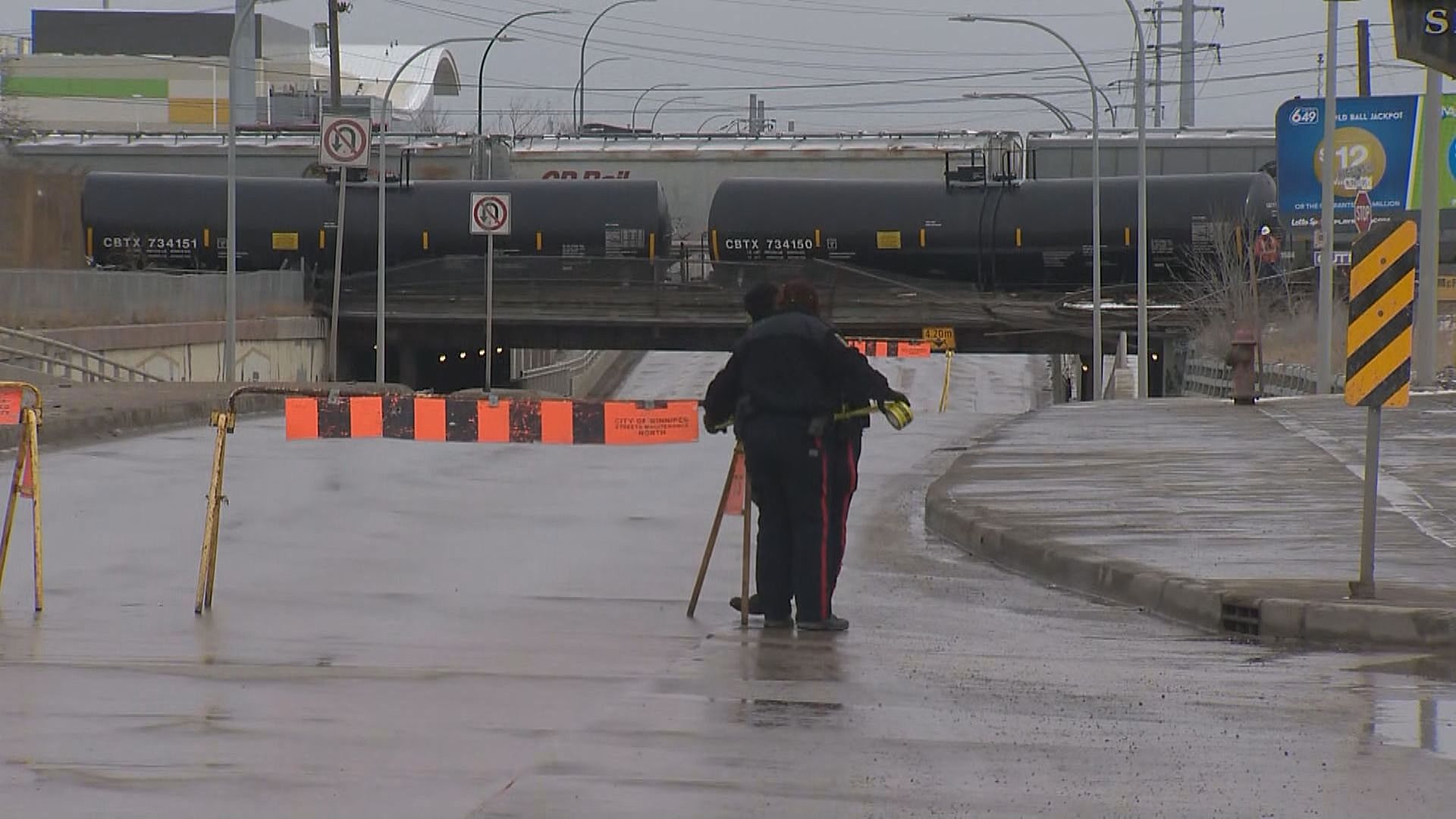 There were no injuries and no signs of any spills, the Winnipeg Fire Paramedic Service said. The street was expected to remain closed for at least until the evening to allow for an inspection of the overpass.