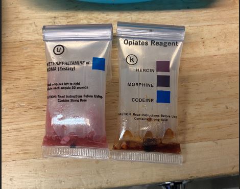 The officer took the vials to the detachment and conducted a field test which indicated the presence of an opioid.