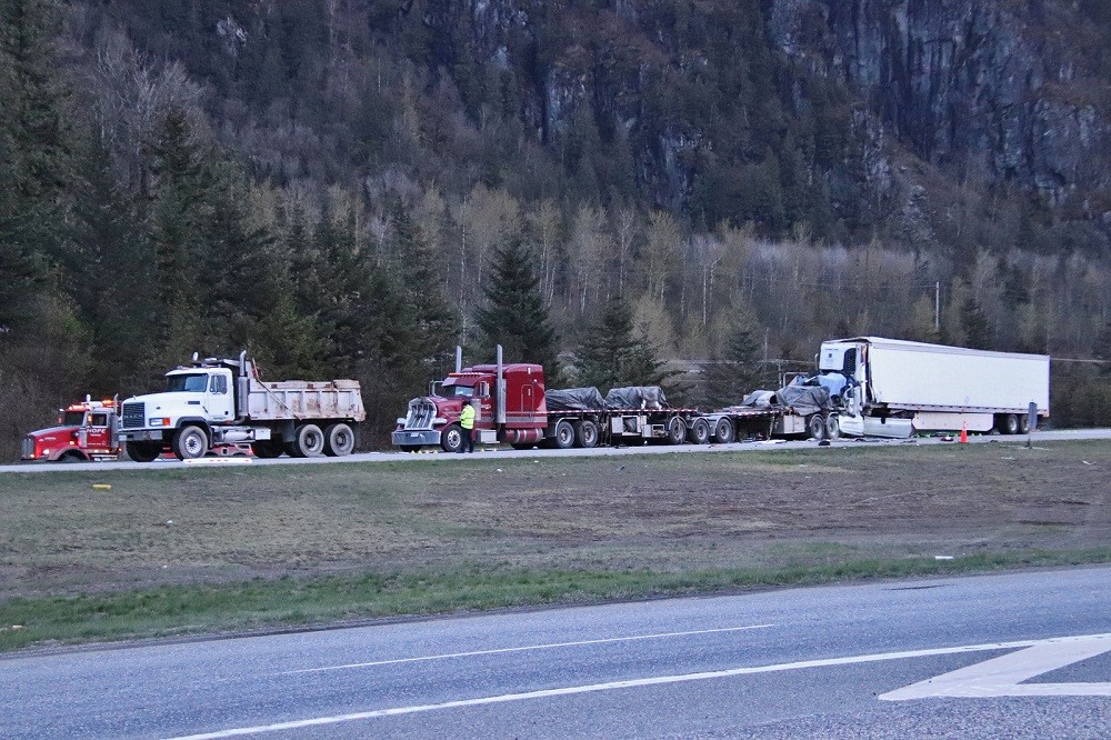 The B.C. Highway Patrol said three commercial vehicles collided on Highway 1 eastbound near Hunter Creek around 4 p.m..