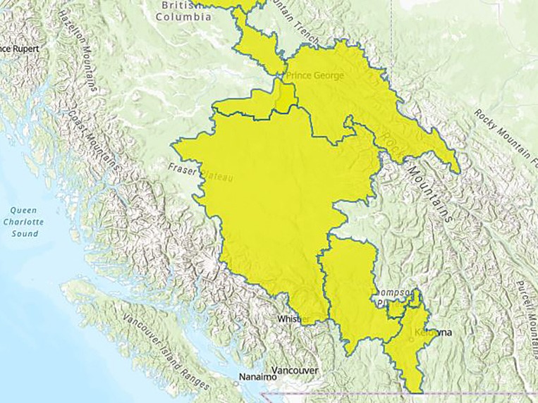 The advisory also stretches north of the Okanagan, and includes the Central Interior, including plateau areas around Prince George, Quesnel and Williams Lake.