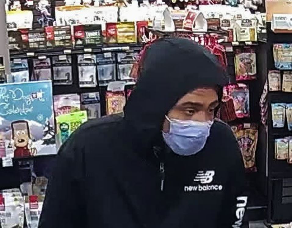 Investigators allege a masked man would walk into each of the stores to the checkout counter “acting like a customer and asked the employee(s) about making a purchase or engaged them in conversation.”