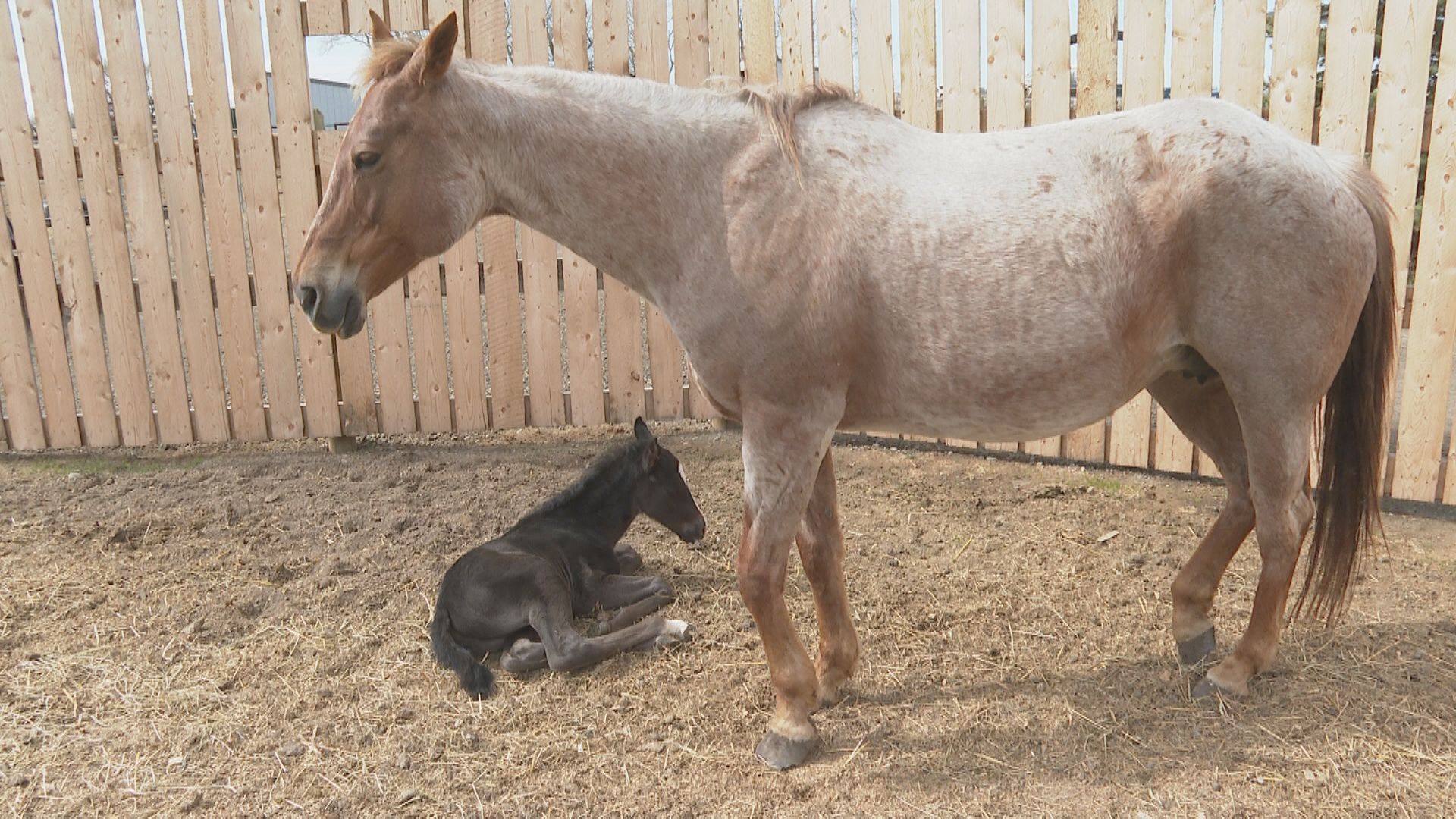 “It goes against mother nature to just put a new foal with a mare even if she just lost a foal,” said Rathy. “You have to basically trick the mare into thinking that she had that foal and then she’ll accept it right away because she thinks it’s her own foal.
