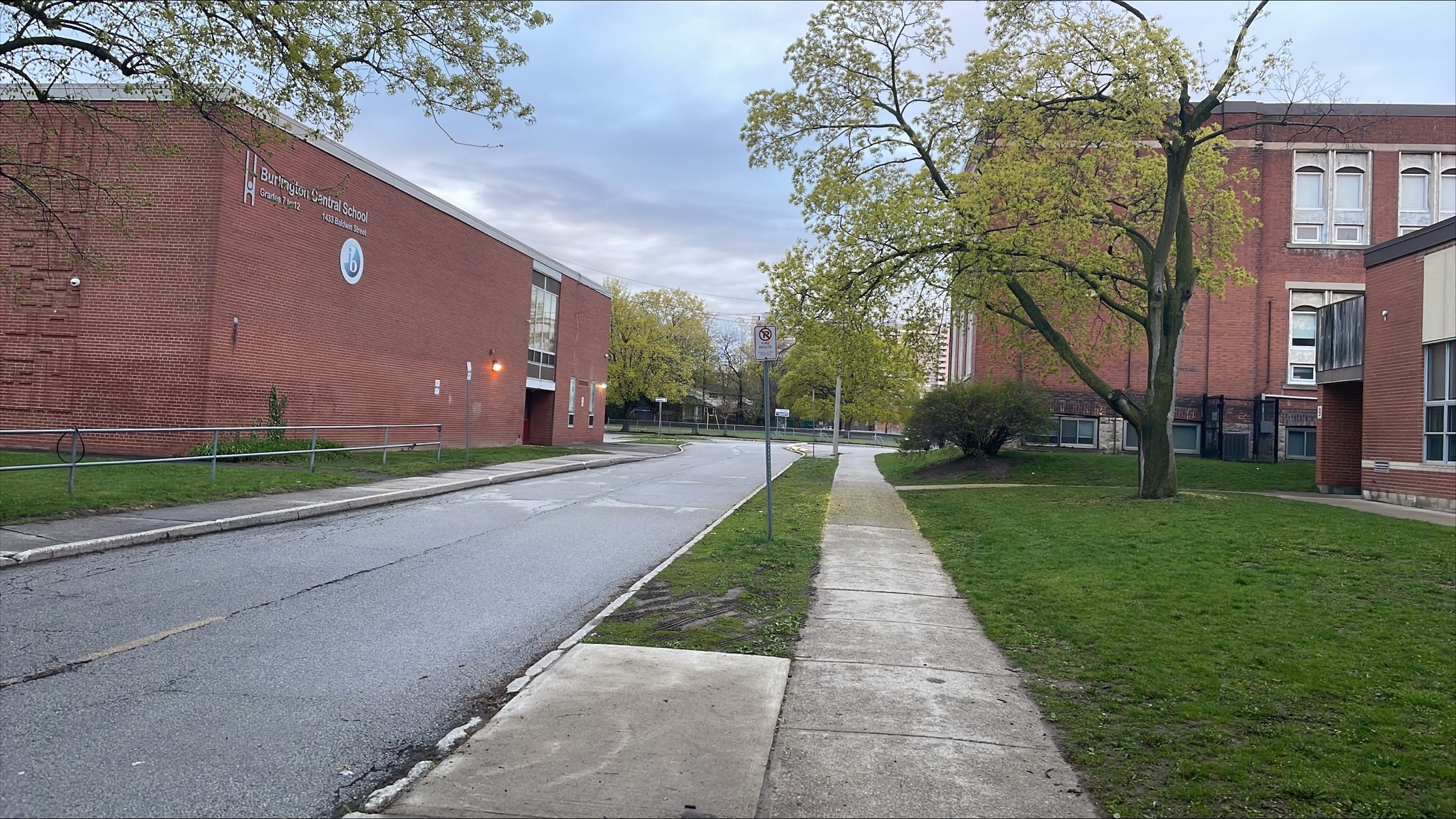 One parent had stopped in the driveway to let their eight-year-old child out of the car to get into the school, investigators said. The shared driveway connects Central Public School with Burlington Central Secondary School.