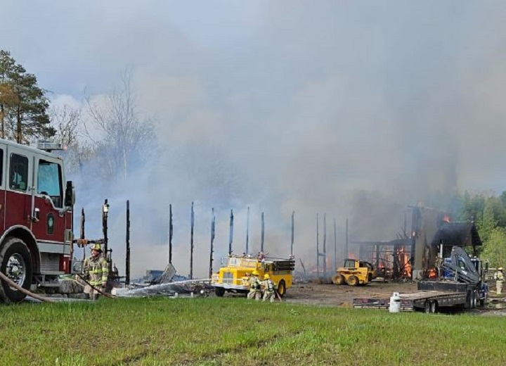 The Ontario Provincial Police say a large fire has broken out at a barn in New Tecumseth, Ont. on Friday morning.