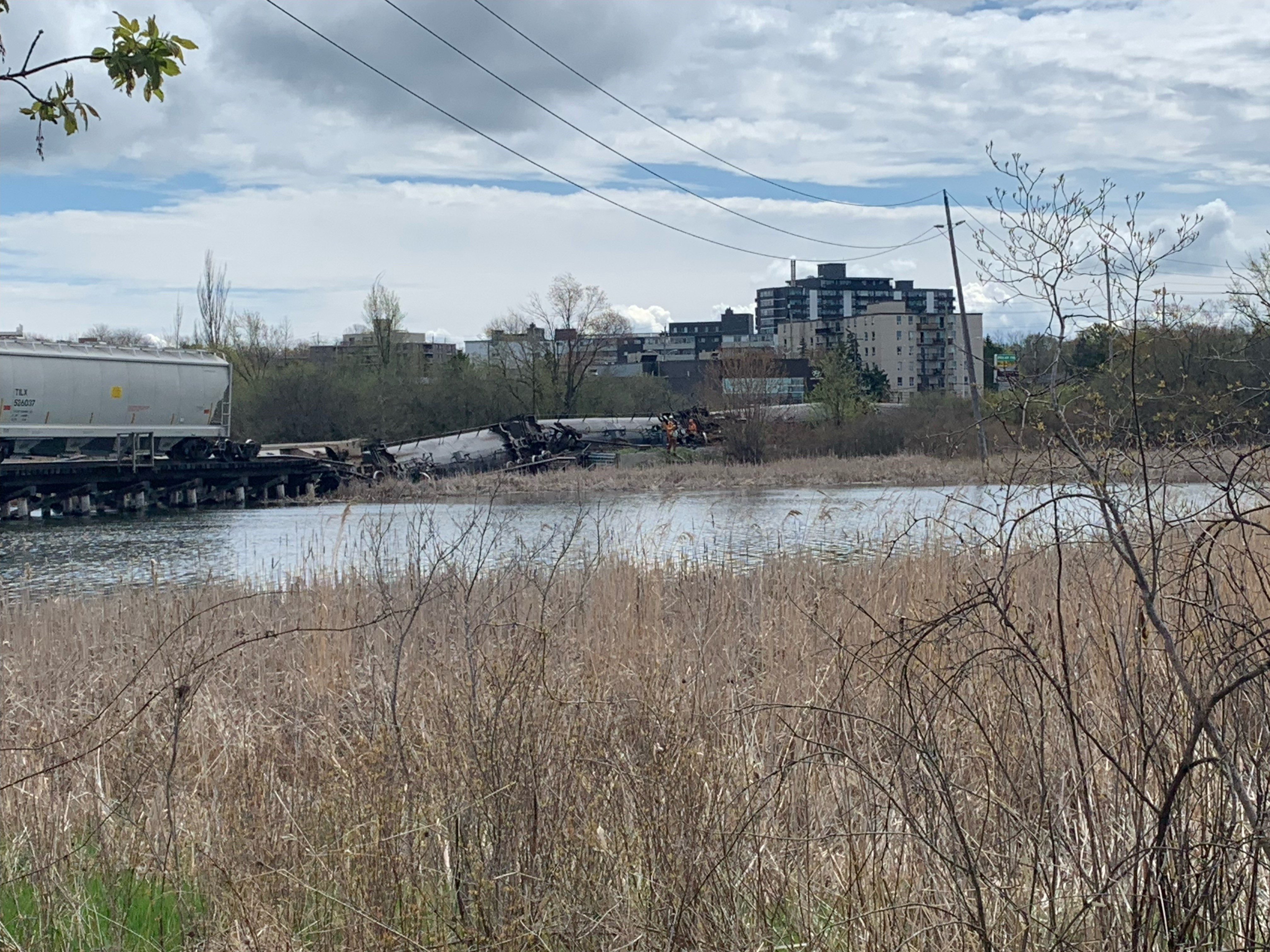 Kingston Police and Kingston Fire and Rescue are on the scene of a train derailment on Bath Road between Queen Mary Road and Armstrong Road.