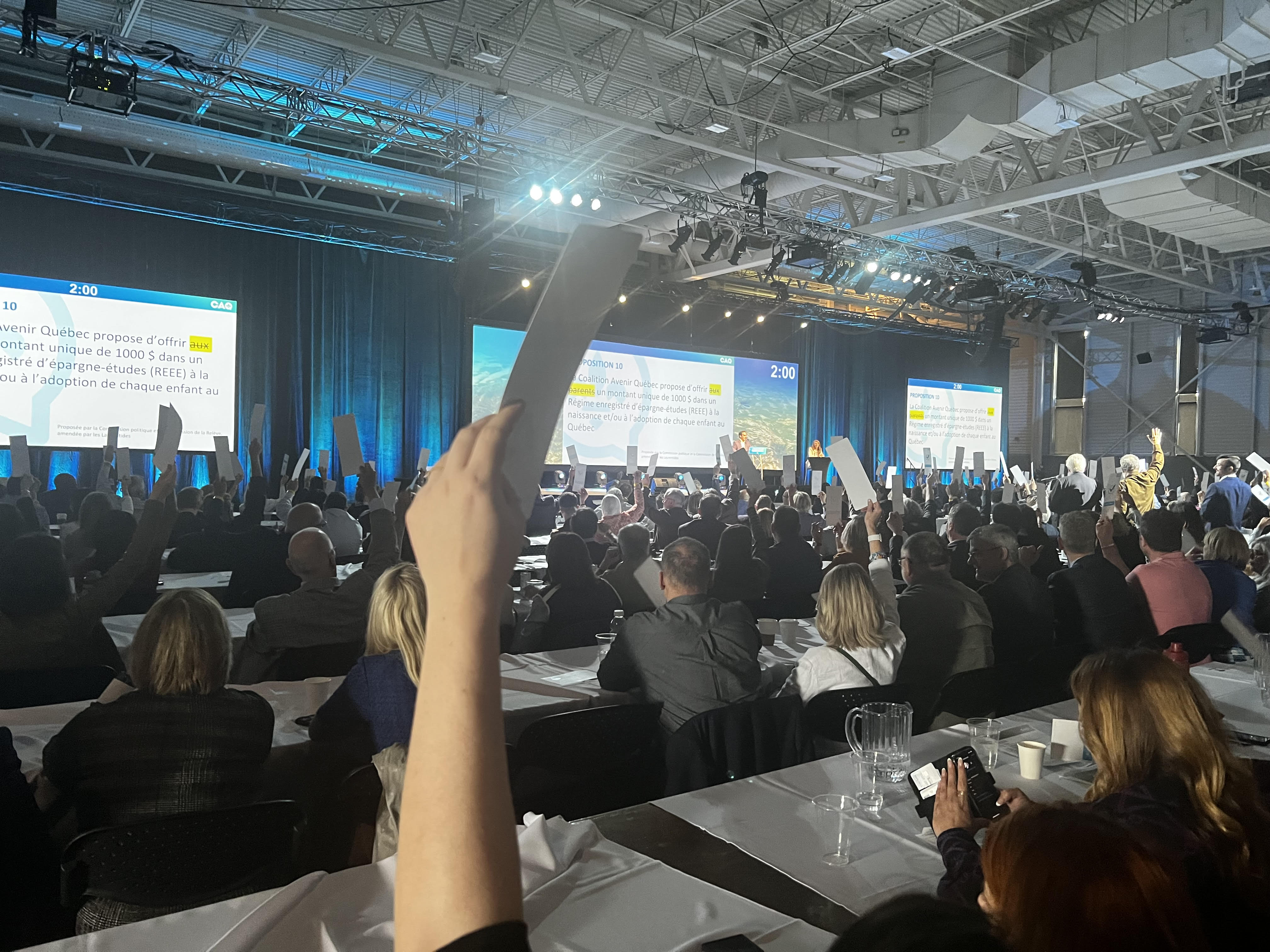 The transition to green energy is a major theme. Members raised their hands in favour of building more hydro dams. Legault has said the province will need to build four or five new dams in the next 20 years to meet skyrocketing energy demand.