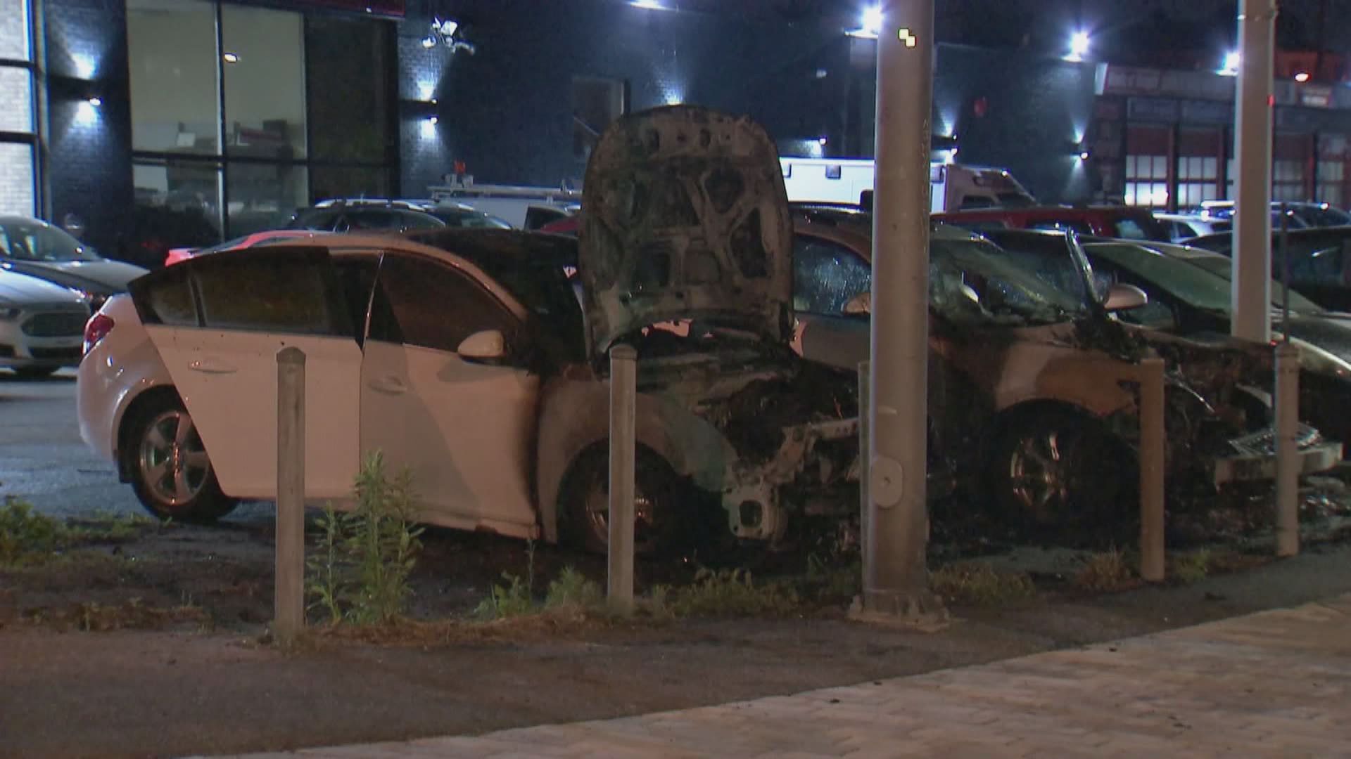 Two cars parked in front of a commercial building in east Montreal were set on fire in the middle of the night on Tuesday.