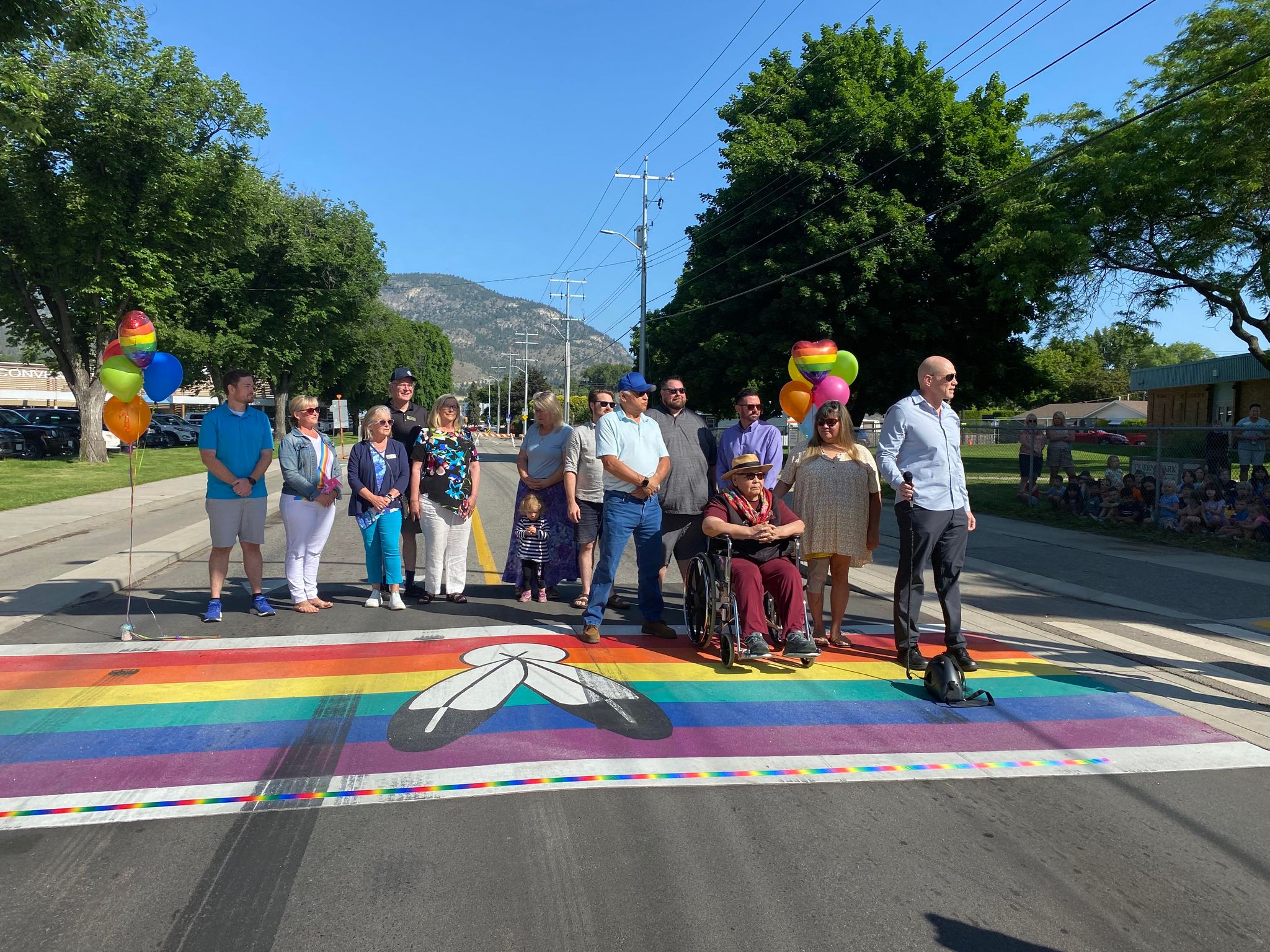 The community of Penticton, B.C., gathered at the new two-spirit rainbow crosswalk for a blessing and ribbon-cutting ceremony.