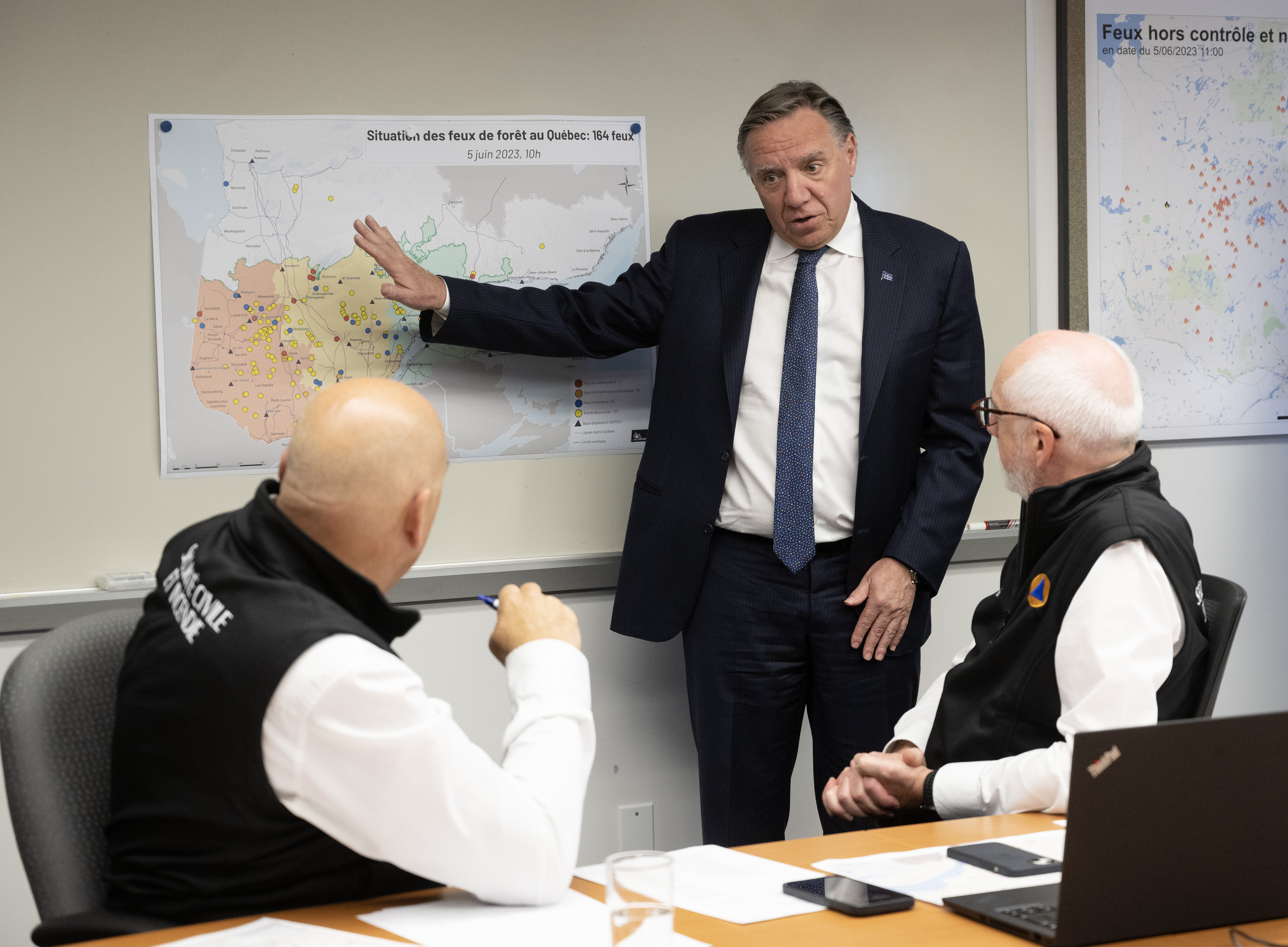 François Legault’s update on the situation comes as the tally rises to 164 wildfires burning across the province, including at least 114 that are out of control.
