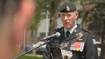 The regimental flag was raised at Regina City Hall today and residents heard speeches from Lt.-Col. Kyle Clapperton, who is also the commanding officer of the Royal Regina Rifles, as well as Regina Police Service (RPS) Chief Evan Bray and Mayor Sandra Masters.