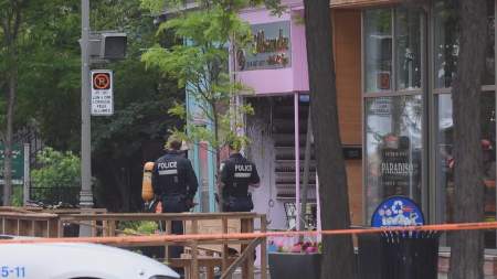 At around 5:20 a.m., a 911 call reported two suspects leaving the scene on foot in an unknown direction, police said. The building is located on Victoria Street, near De Maisonneuve Street.