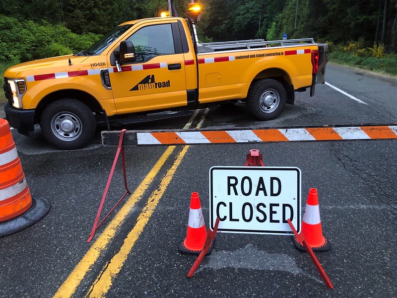 Checkpoints are in place along the detour route to provide information for essential travellers.