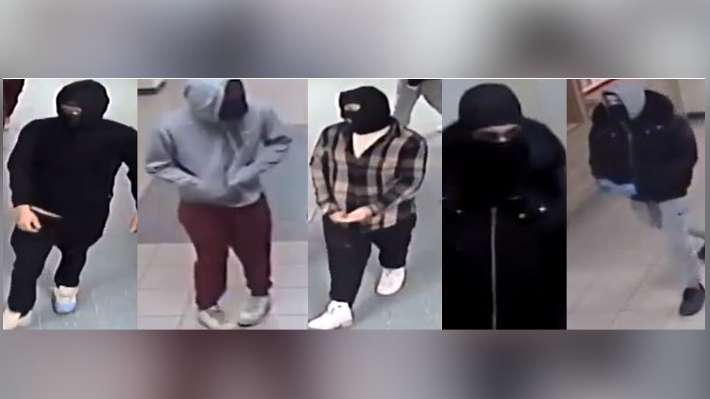 All of the unknown suspects, caught on surveillance video, covered their faces during the occurrence.