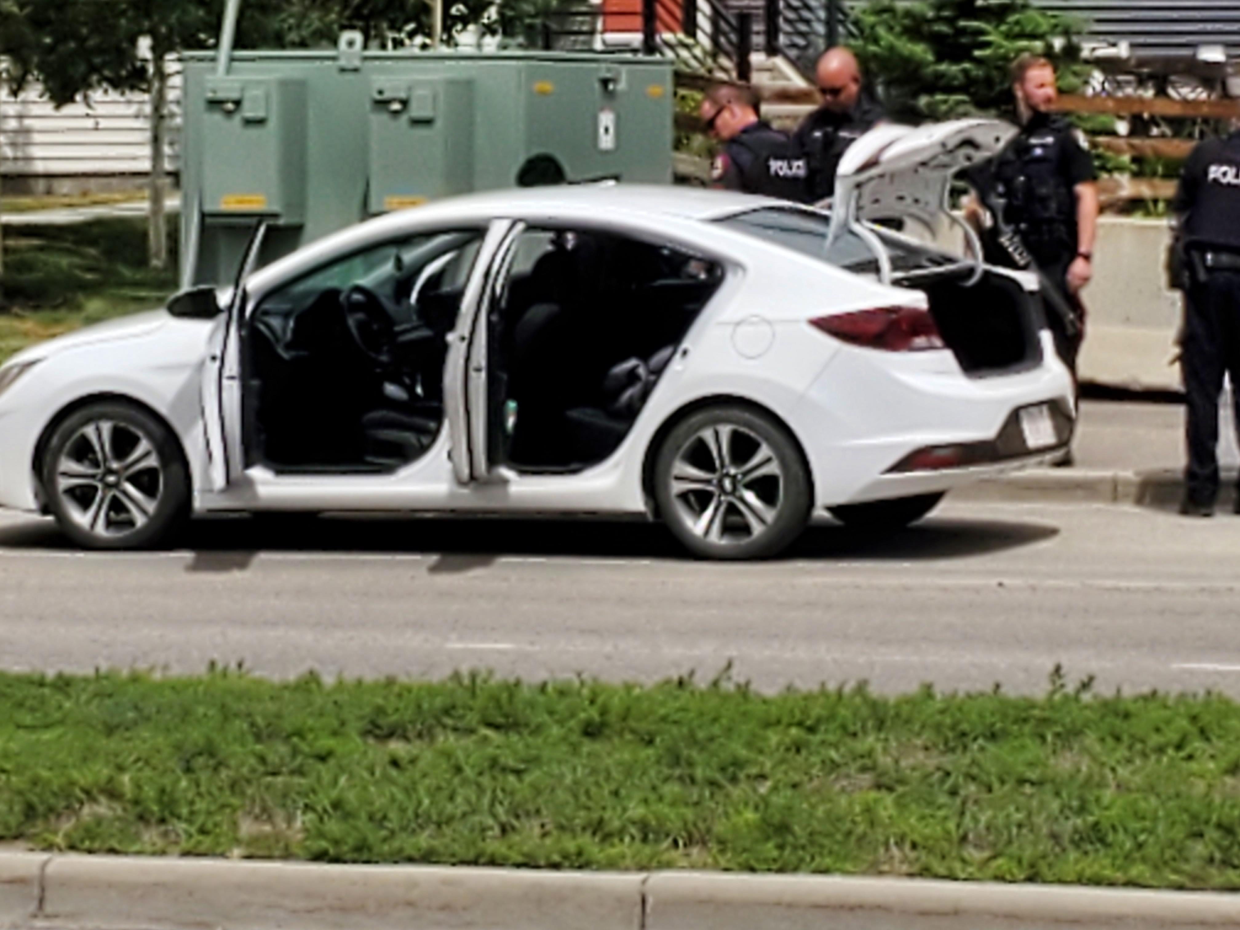 According to a Calgary Police Service release, officers received multiple reports at noon Monday of bystanders being shot by an unknown projectile in Auburn Bay and Legacy. The suspects were spotted driving in a white Hyundai Sonata.