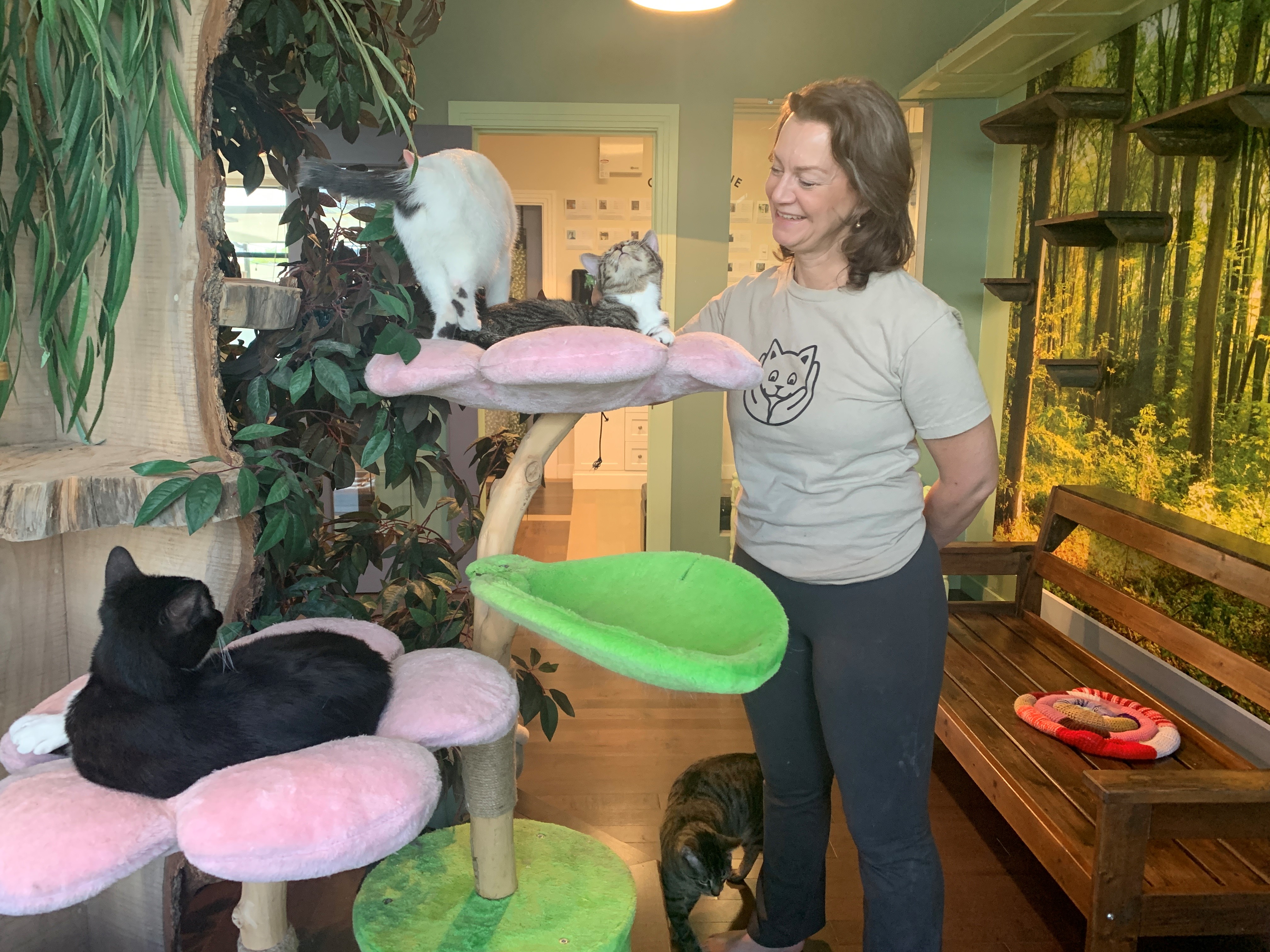 “What if your partner is allergic or you live in a condominium or apartment complex where you’re not allowed to have pets? You can come and still enjoy the company of cats,” she said.