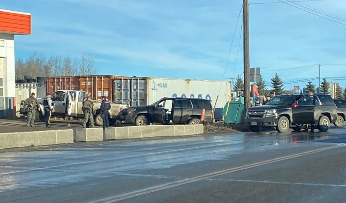 He then fired four more shots at the font of the building, before driving away and returning five minutes later when he fired seven more shots, two of which entered windows of the detachment, before ramming an RCMP vehicle and driving away.