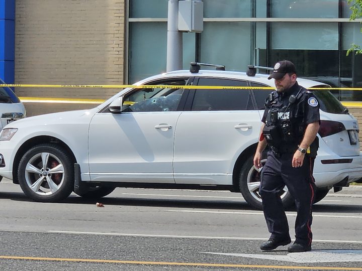 In the area of McCowan Road and Ellesmere Avenue, a white Audi SUV was seen with bullet holes in the driver’s window.