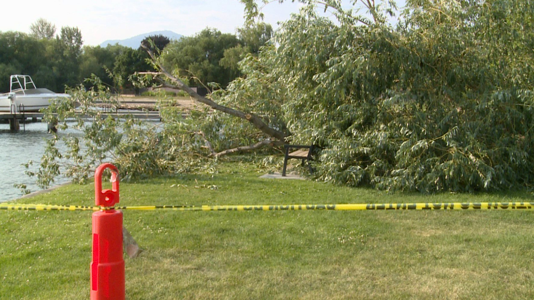 The incident happened at Kinsmen Park on Abbott Street and involved a multi-trunk tree, with one of its trunks suddenly breaking at ground level.