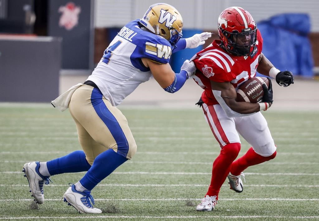 Dickenson described Calgary’s overtime loss to Saskatchewan as a “gut punch” but said they’ll use it to try to refocus and get some extra energy for the match against the Bombers.