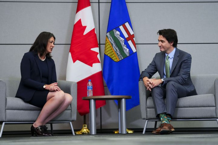 Prime Minister Justin Trudeau discussed carbon emissions and the strike by B.C. port workers during a brief meeting Friday with Alberta Premier Danielle Smith.