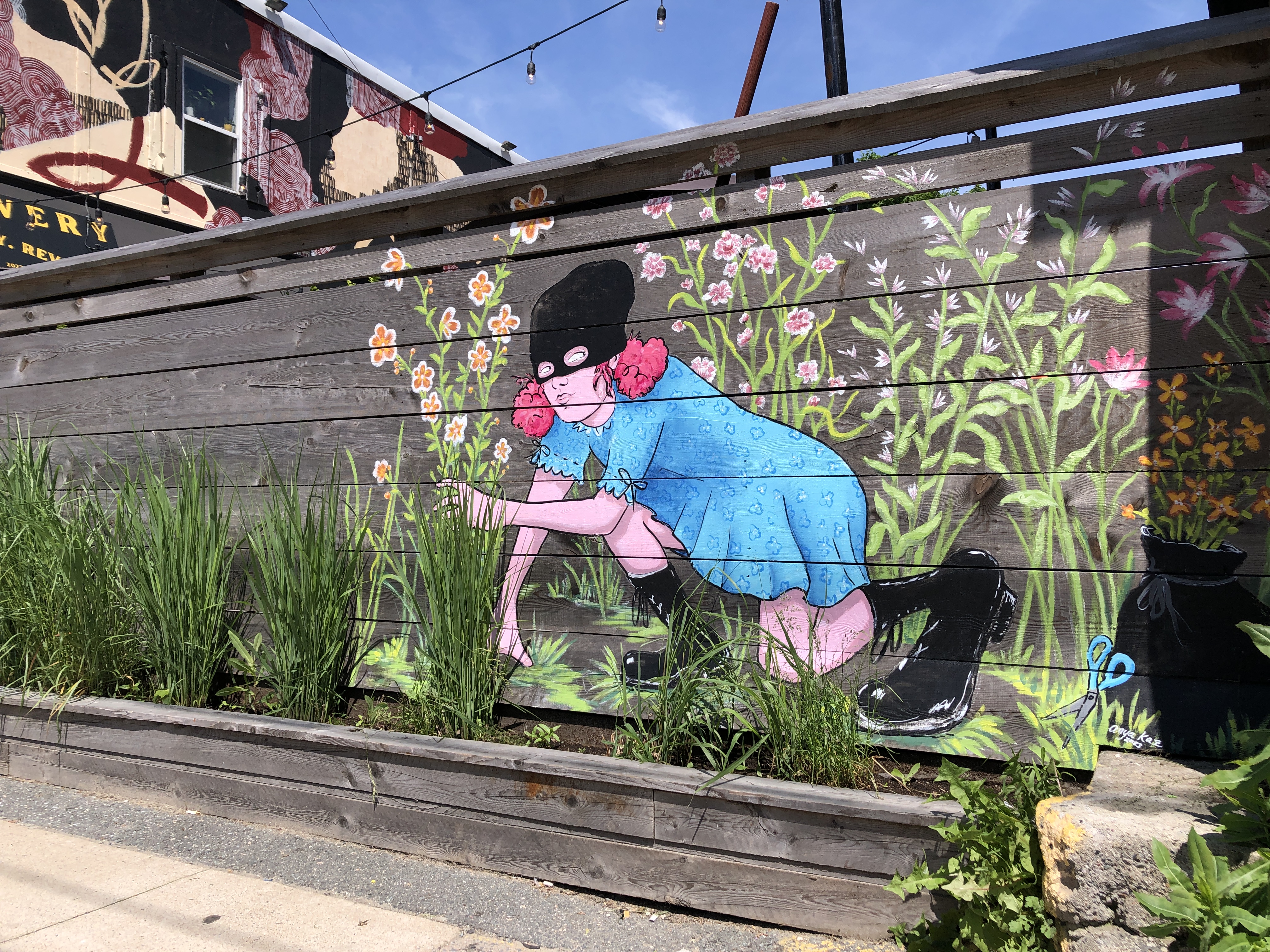 “The piece that I chose to do is a messy mix of wildflowers,” she says. “I really loved the juxtaposition of the busy street, all of the concrete and everything around, and sort of putting a little garden right in the middle of that.”