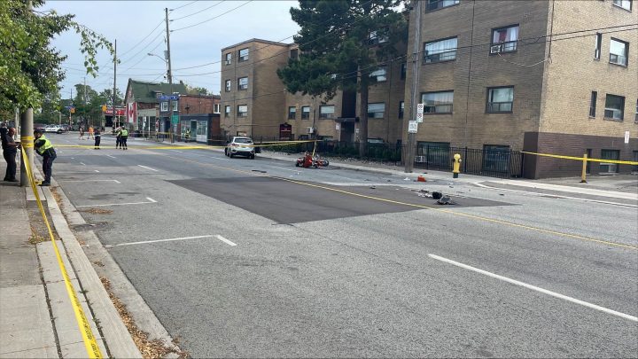 Emergency services were called to the scene of the collision just after 3 p.m. on Wednesday. Officials said a car struck a motorbike on Islington Avenue near Lake Shore Boulevard.