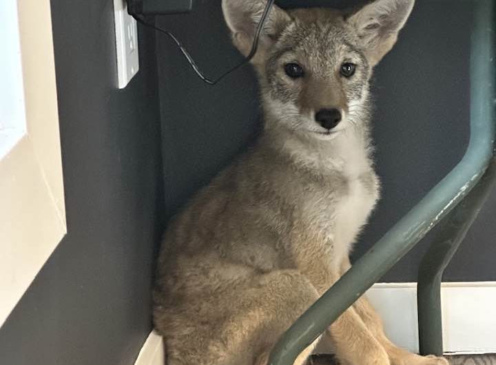 “The cat walked in, I turned my back, I turned around again, and a small coyote pup —who I guess was following the cat — ran into the house … and parked out in my dining room.”