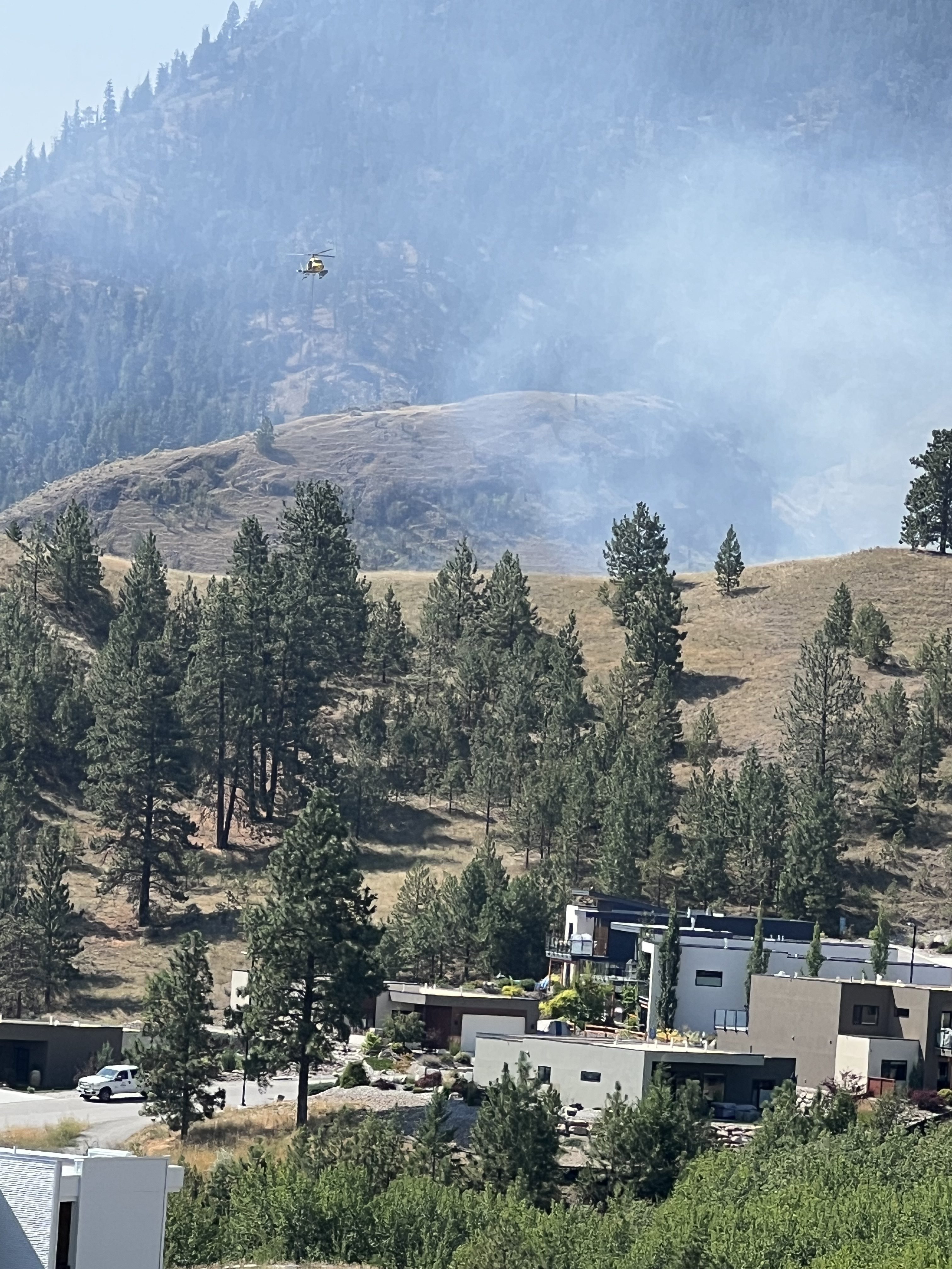 Firefighters are working to douse a fire in the hills above Skaha Lake currently mapped at 1.13 hectares, up from 0.6 earlier in the day.
