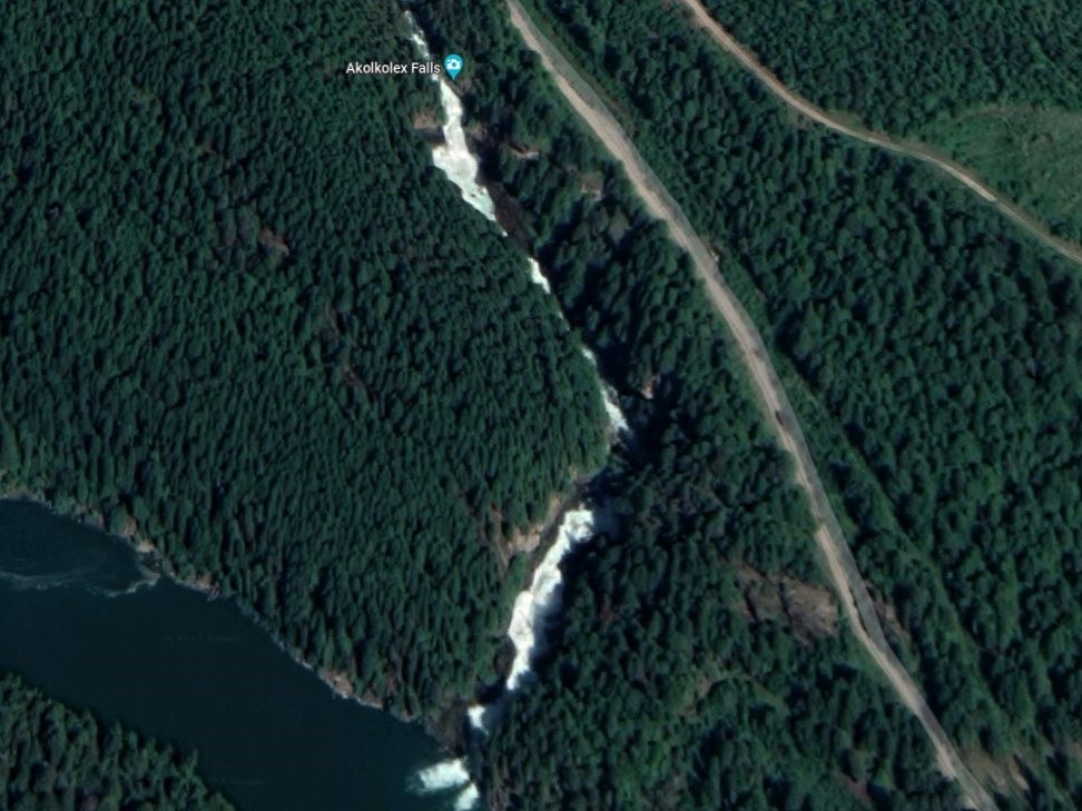 The falls are located around 30 kilometres southeast of Revelstoke, on the east side of Upper Arrow Lake.