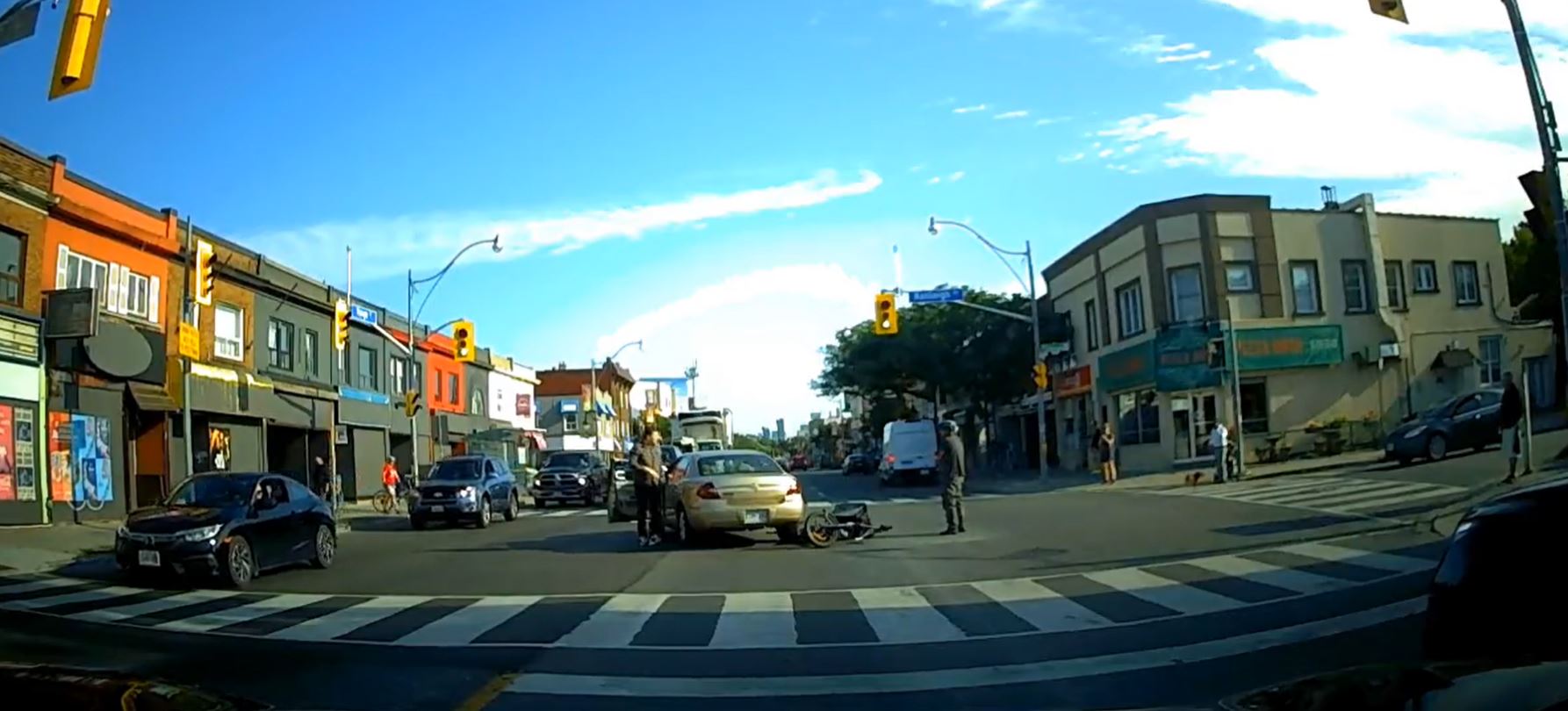 A dramatic video shared on social media appears to show the shocking moment a cyclist was struck by a vehicle in Toronto and dragged into an intersection.