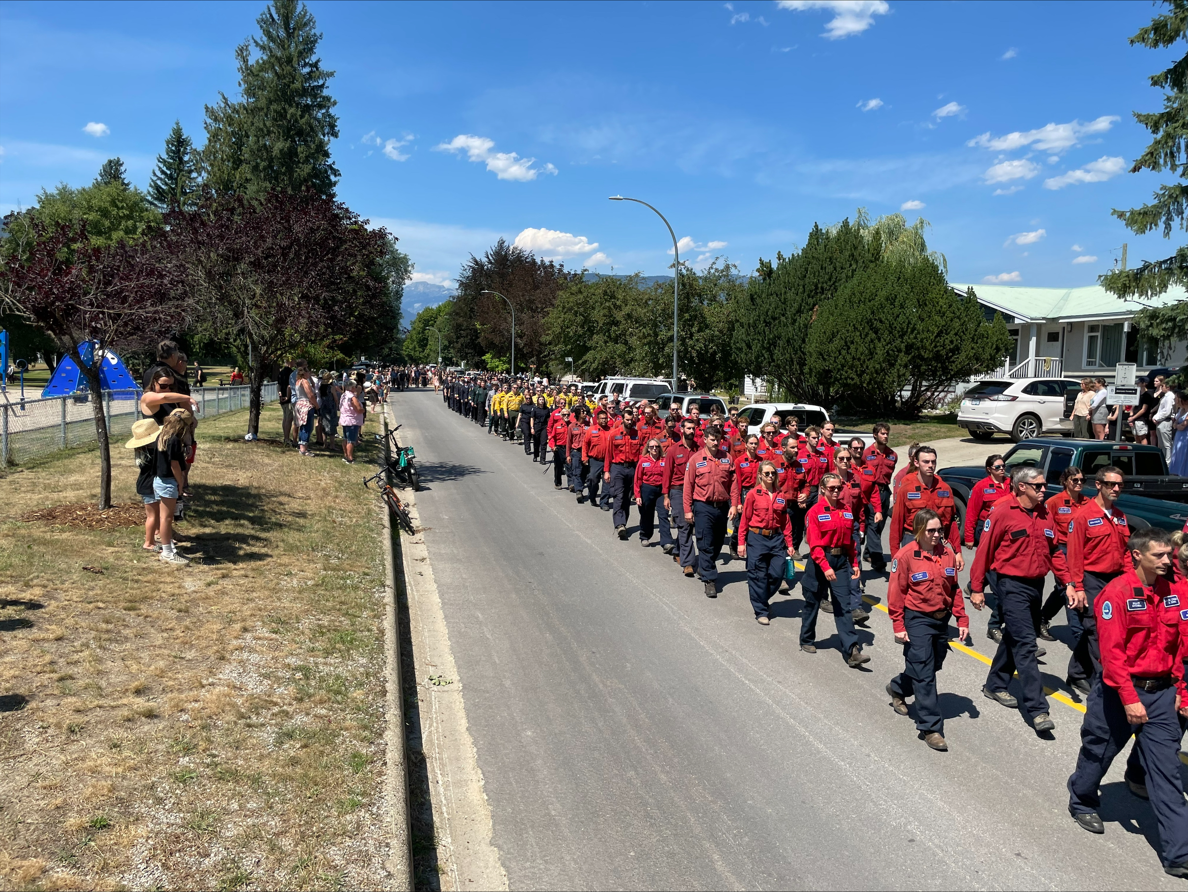 A memorial procession and service for a 19-year-old firefighter who died in the line of duty earlier this month was held in Revelstoke, B.C., on Saturday afternoon.