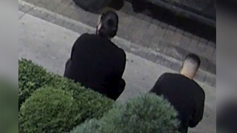 The first suspect is described as a man with a heavy build, long hair in a “man bun,” a dark beard and dark clothing.