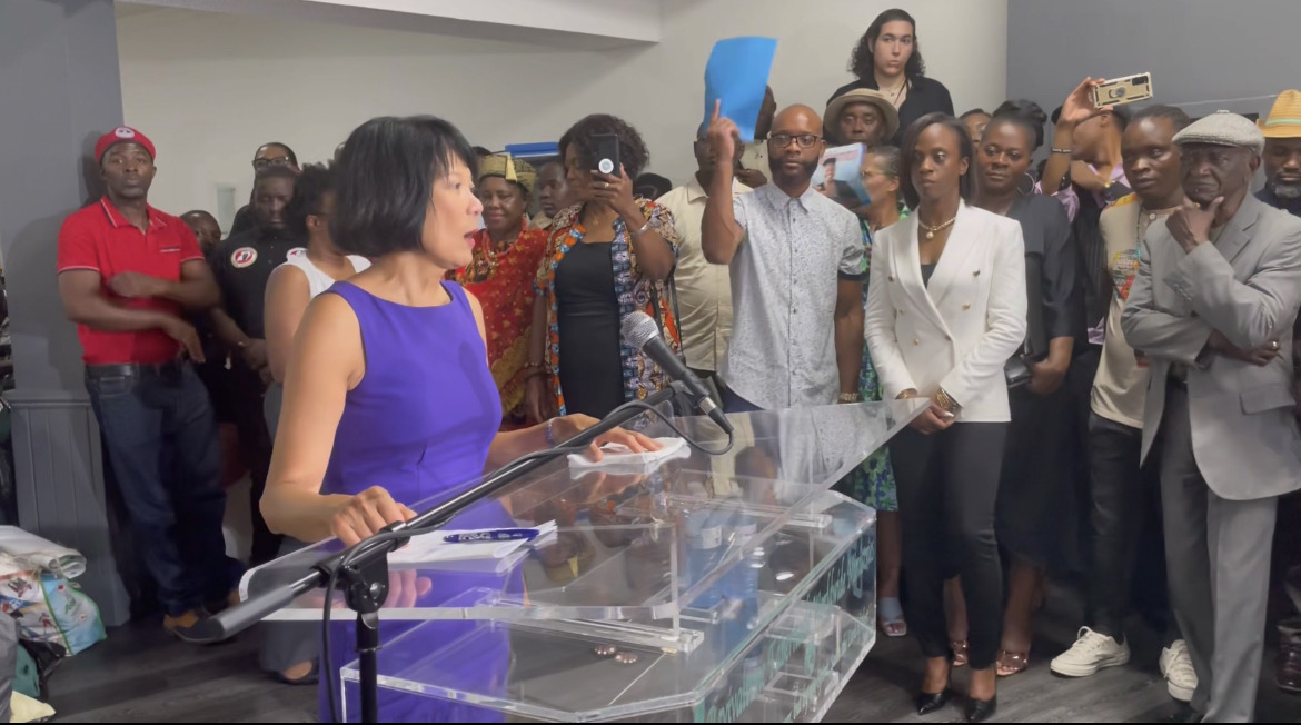 Speaking in front of makeshift beds set up at a church in Toronto’s north end, Chow invited Immigration Minister Marc Miller and Housing Minister Sean Fraser, both appointed to new roles this week, to tour the facilities she called “unsuitable” for dealing with the crisis.