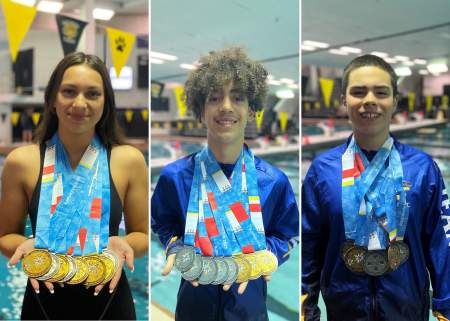 All three swimmers came home with medals — Izzy winning five gold and three silver; Preston winning three gold and six silver; Kirin winning five gold, three silver and one bronze.