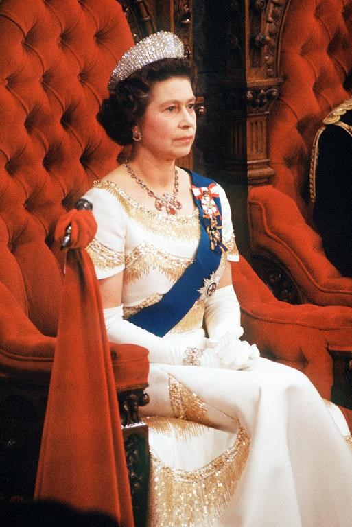 It depicts the queen in 1977 on her throne in the Senate, where she delivered a speech exalting Canadian unity against the backdrop of an ascendant Quebec separatist movement.