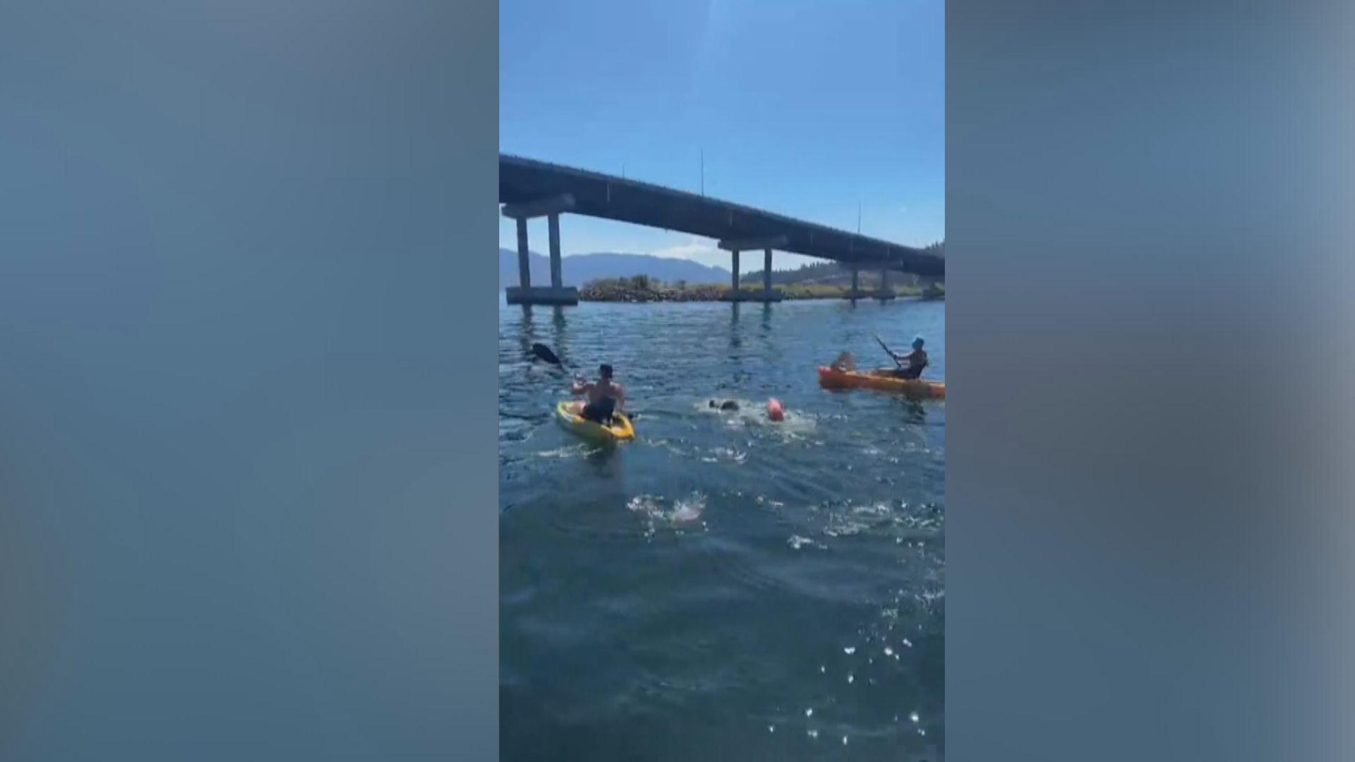 In just under three days, Pelletier swam the entire distance of Okanagan Lake, from Vernon to Penticton.