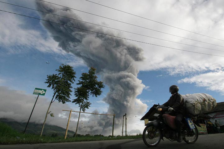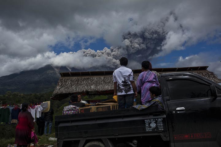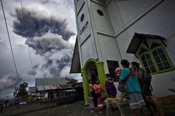The 2,600-meter (8,530-foot) Mount Sinabung has sporadically erupted since September. An eruption in 2010 killed two people and caught scientists off guard because the volcano had been quiet for four centuries.