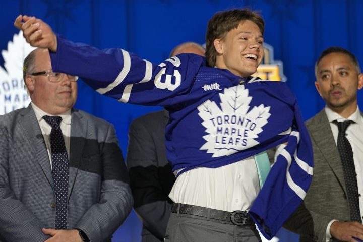The Maple Leafs selected the 18-year-old forward with the 28th overall pick at the 2023 NHL draft.