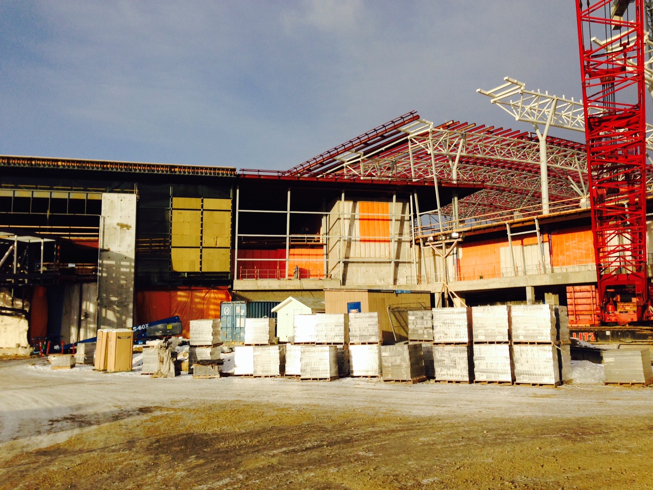 So far more of the granite has been installed along with over 660 kilometres of radiant tubing to heat the building.
