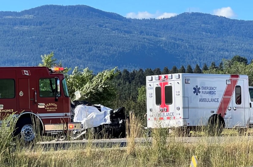 “The collision resulted in the death of two grandparents on vacation in the Okanagan from Vancouver,” BC Highway Patrol said in a press release.