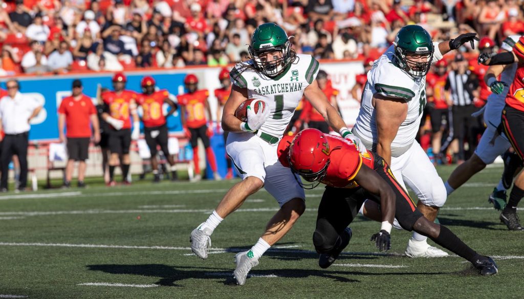 Frank, competing in just his second season of Canada West play, finished second in the conference with 562 rushing yards before adding another 341 yards on the ground during Saskatchewan’s playoff run.