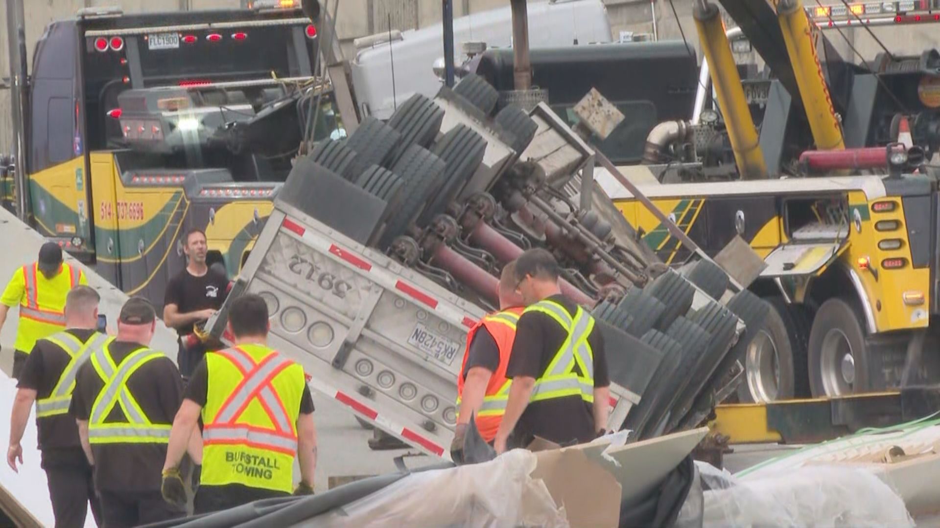 Shortly after 6:30 a.m., the Sûreté du Québec announced that the clearing of the lanes and the towing of the damaged truck would not allow normal traffic to resume before noon.