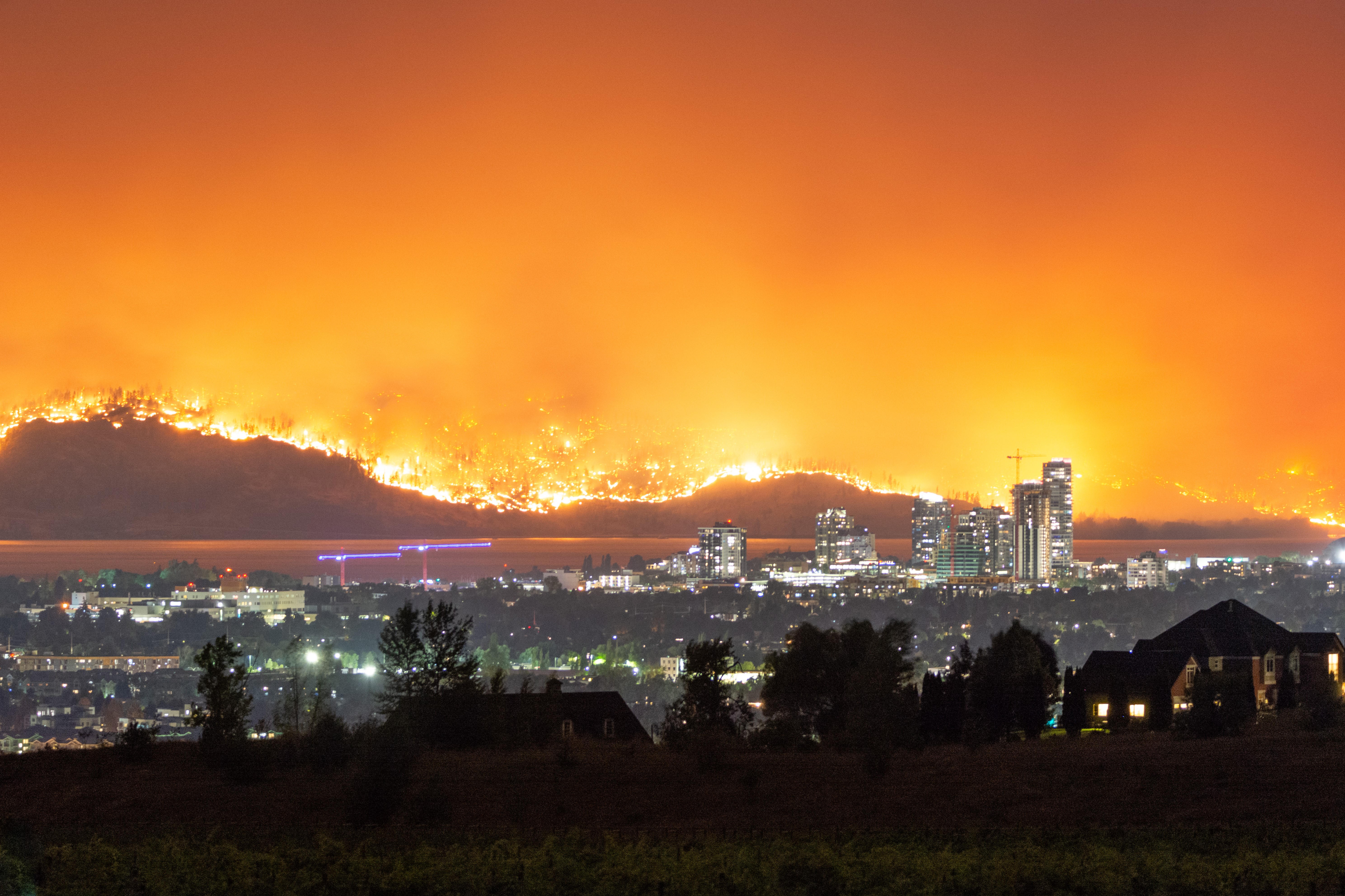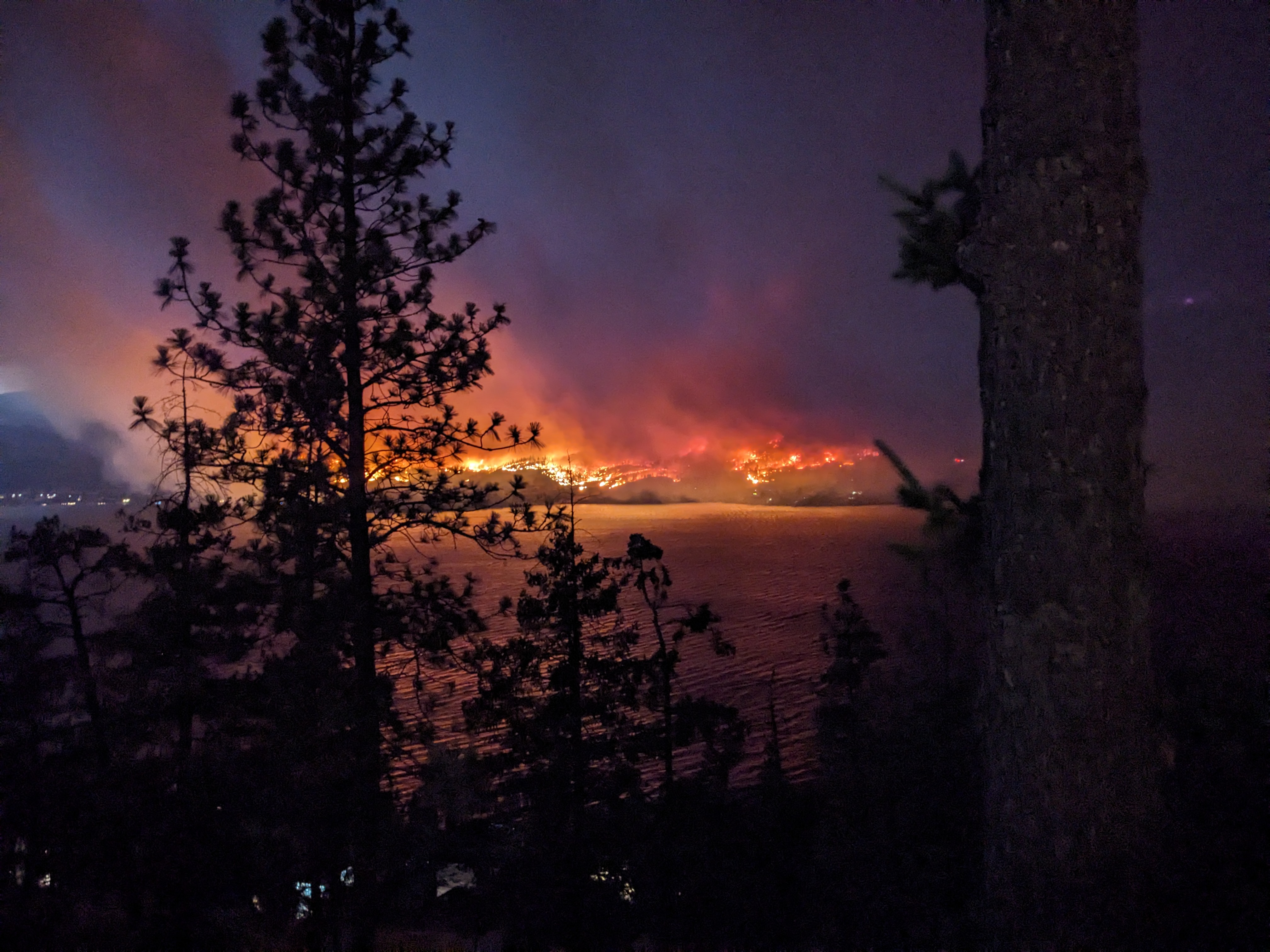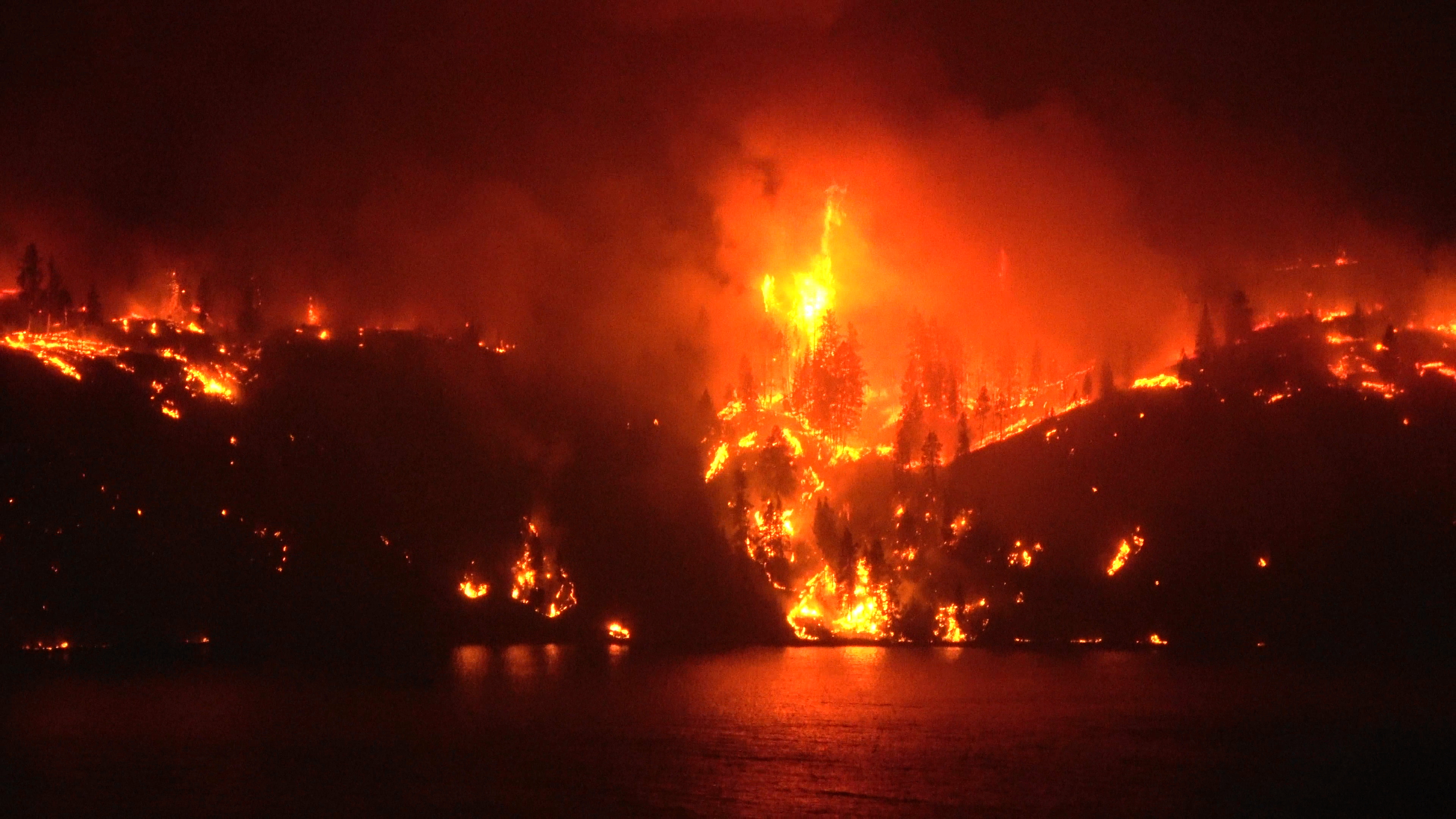 With its menacing orange and red glow, the McDougall Creek wildfire near West Kelowna lit up the Central Okanagan skyline on Thursday night.