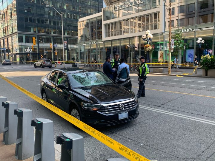 In an update after 9 a.m. on Sunday, police said Bay Street remained closed from Charles to Bloor streets.