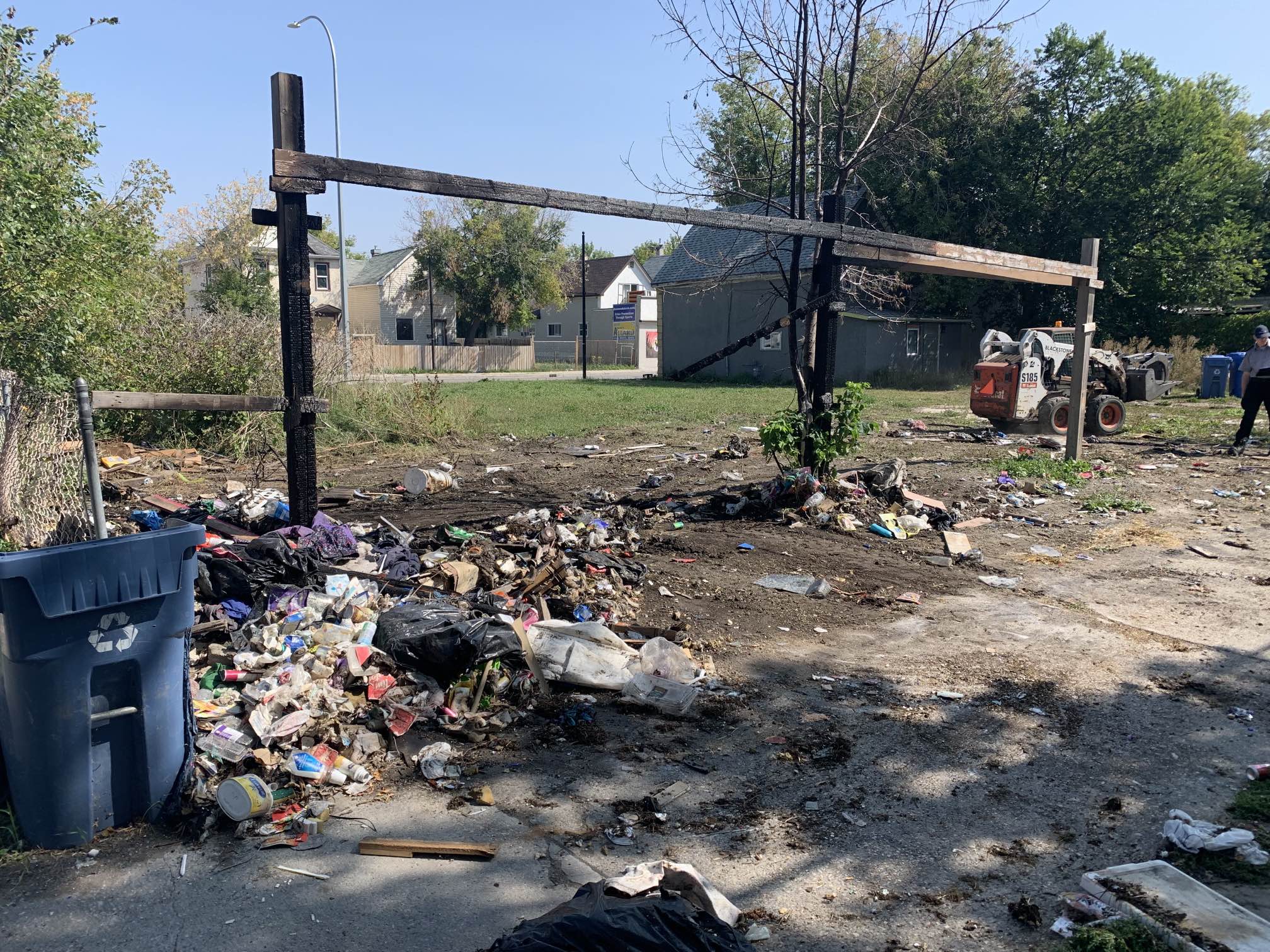 A pile of garbage in a Burrows-area back lane is finally getting cleaned up by the City of Winnipeg after months of complaints from neighbouring residents.