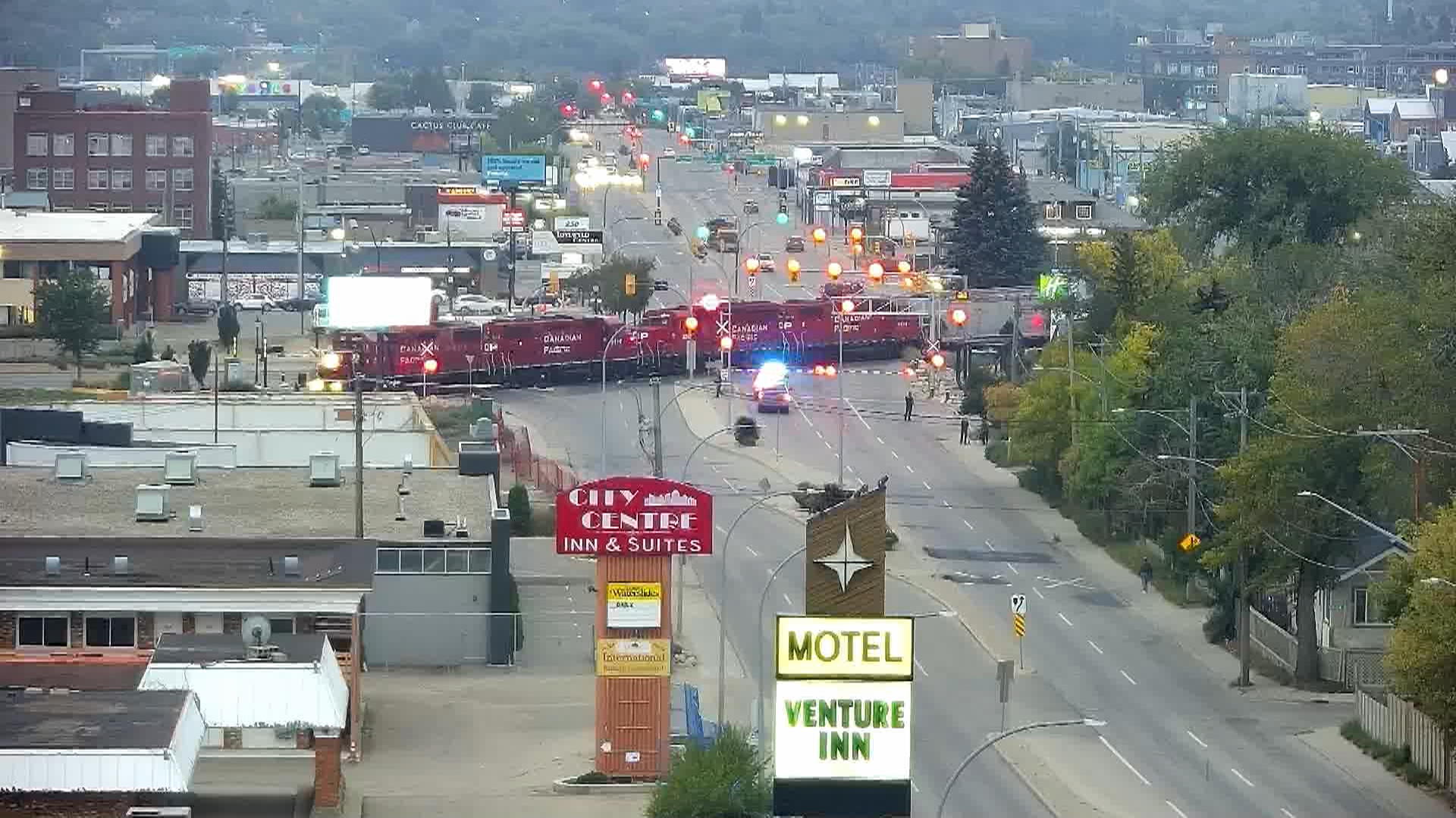 A train hit a person in Saskatoon on Thursday morning and caused a shutdown of the road at 25th Street and Idylwyld Drive North.