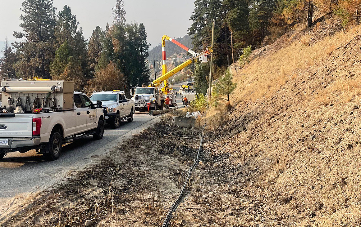 Another one of the challenges crews are addressing are power outages within affected areas. The McDougall Creek wildfire caused significant damage to the electrical infrastructure in the area with approximately 27 kilometres of power lines, 359 poles and 66 pieces of other equipment needing to be replaced. Repair work by BC Hydro is well underway and crews are hard at work to restore power.