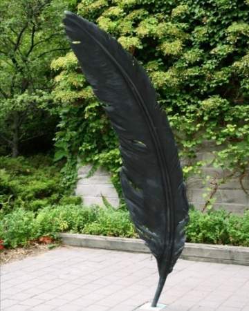 The art piece, called “Feather”, is a bronze rendition of a crow’s feather that was created by John Greer in 1997.