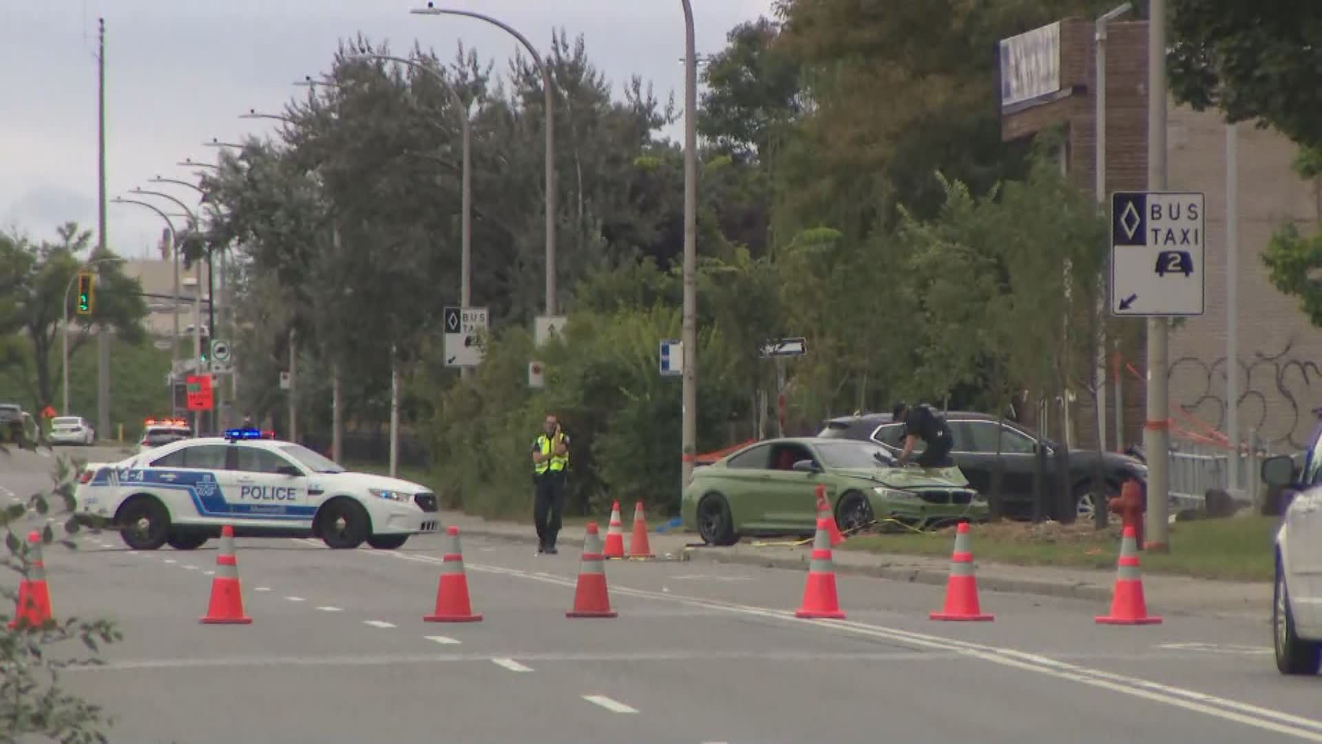 According to Montreal police, the crash happened when the car exited a parking lot along Côte-de-Liesse Road, near Hébert Street.