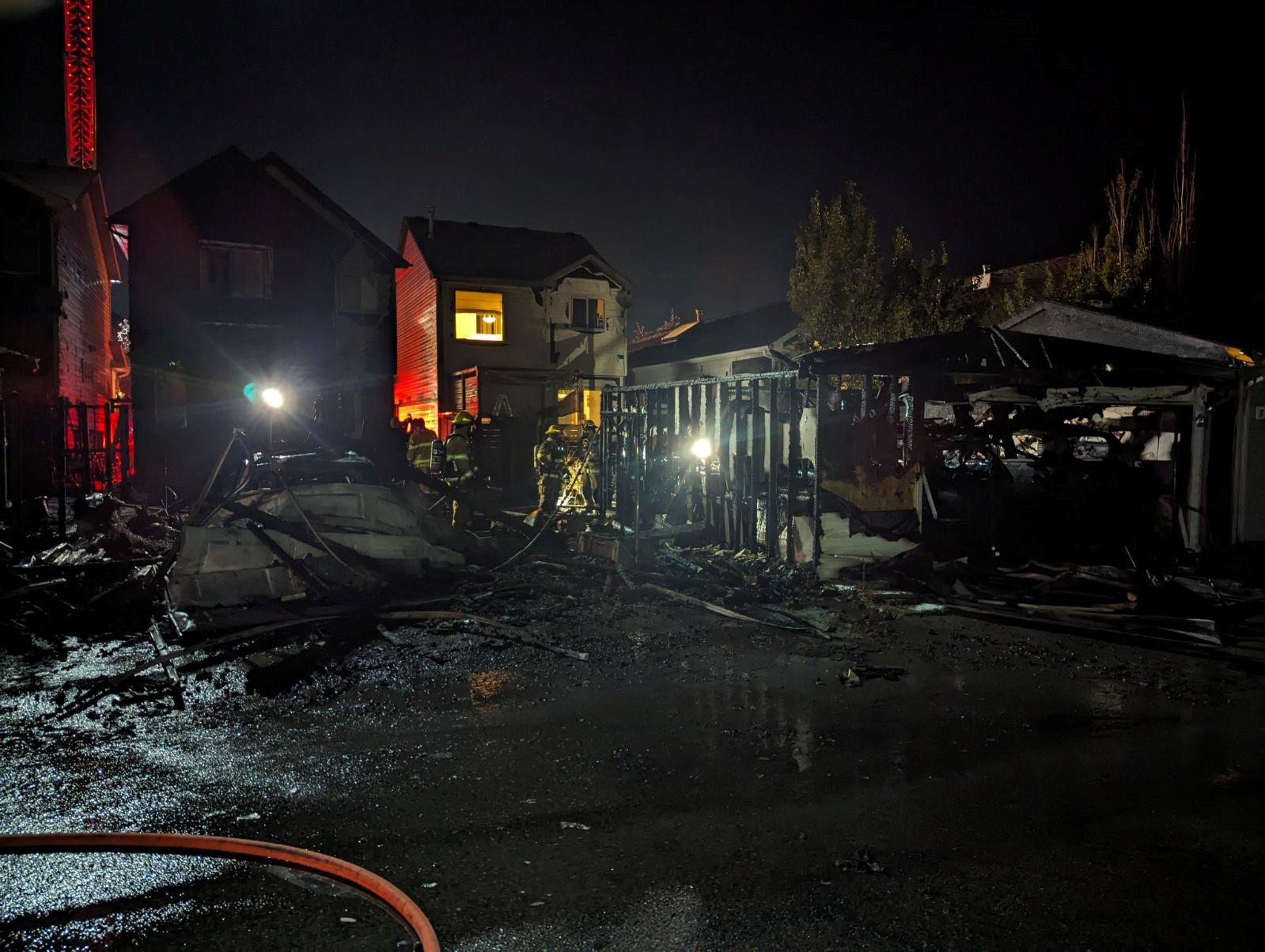 Calgary Fire said that three of the garages are total losses while one suffered structural damange. As well, three homes and seven other structures suffered siding, window and some structural damage.